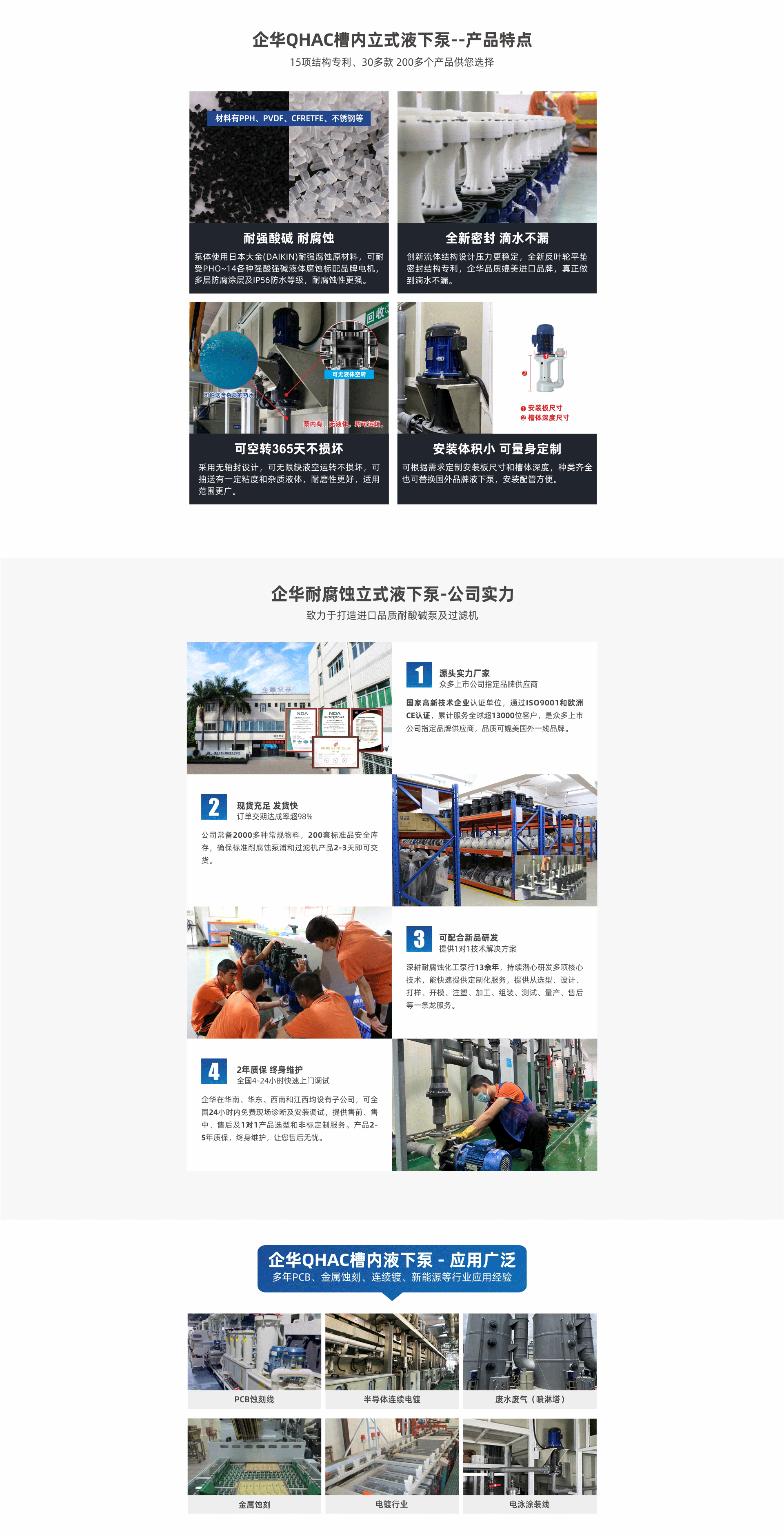 PCB蝕刻、金屬蝕刻、半導體連續電鍍、LED/LCD玻璃面板以及各種酸堿藥液的循環輸送等應用領域